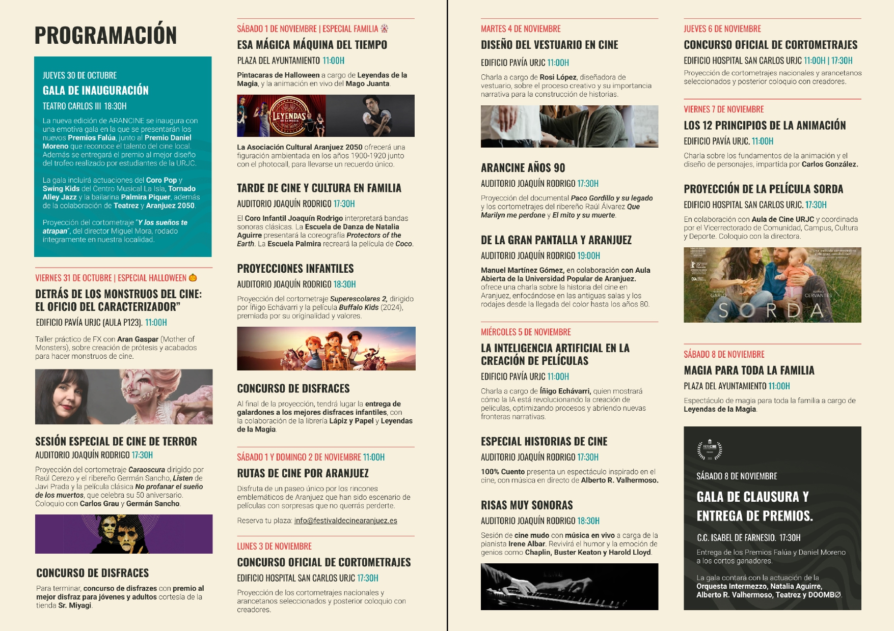 INFORMACIÓN Y PROGRAMACIÓN https://www.festivaldecinearanjuez.es Programacion ARANCINE A3