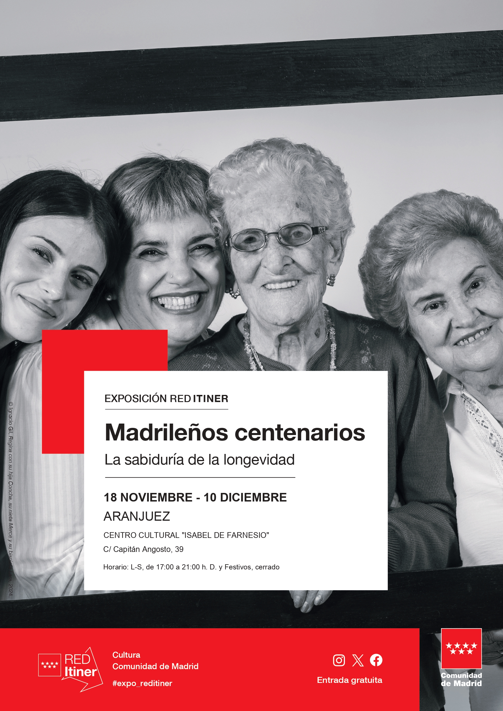 Estamos ante una exposición de fotografías de personas centenarias de la Comunidad de Madrid, mujeres y hombres que nacieron antes de 1924 en un Madrid que comenzaba a modernizarse y a expandirse, pero que todavía conservaba las desigualdades sociales y las tensiones políticas características de la época. En su juventud sufrieron la devastación de la Guerra Civil, que marcó profundamente a toda su generación, y sobrevivieron la dureza y pobreza de la posguerra. Gran parte de su vida adulta transcurrió bajo una dictadura, y han sido testigos de excepción de la transición española y de la consolidación de la democracia.