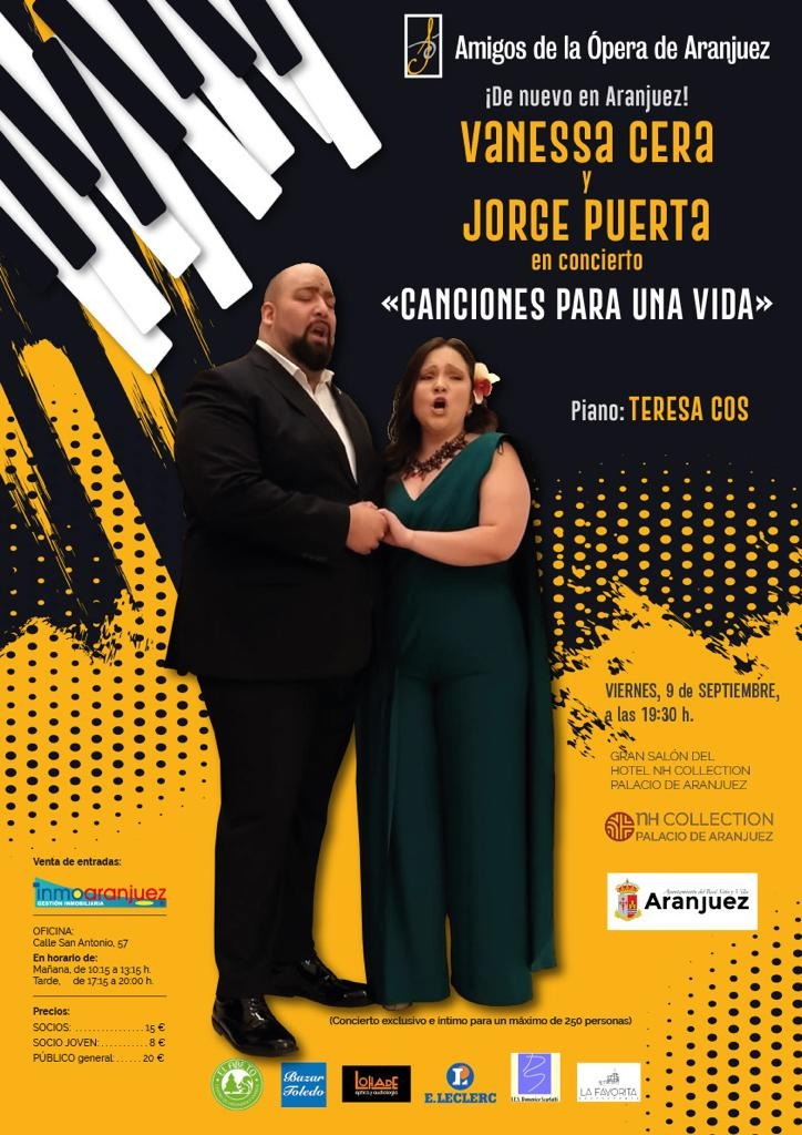Acompañados al piano por Teresa Cos Entradas a la venta desde el 23 de agosto en la oficina de INMOARANJUEZ (C/ San Antonio,57) Socios: 15 €