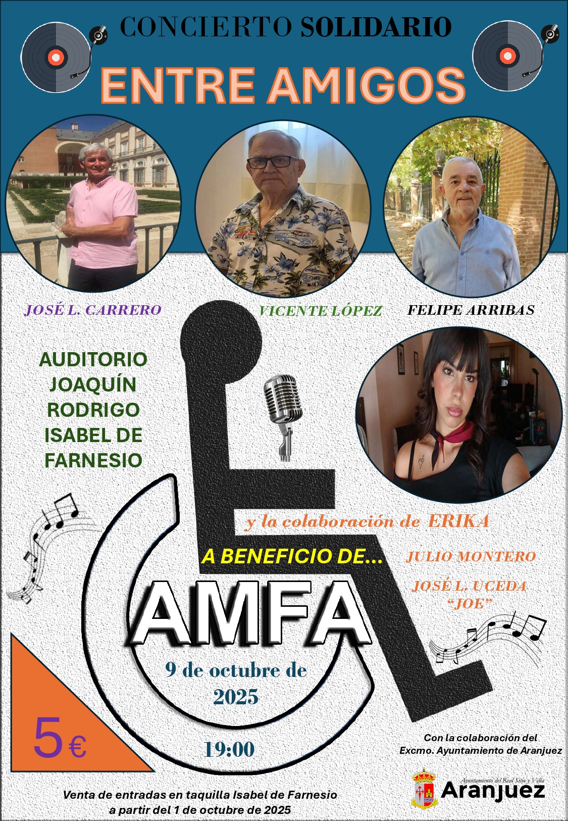 09oct19:0021:00CONCIERTO SOLIDARIO "ENTRE AMIGOS"JUEVES 9 DE OCTUBRE 19H. AUDITORIO CC ISABEL DE FARNESIO. ENTRADA 5 EUROS DE VENTA EN CONSERJERÍA