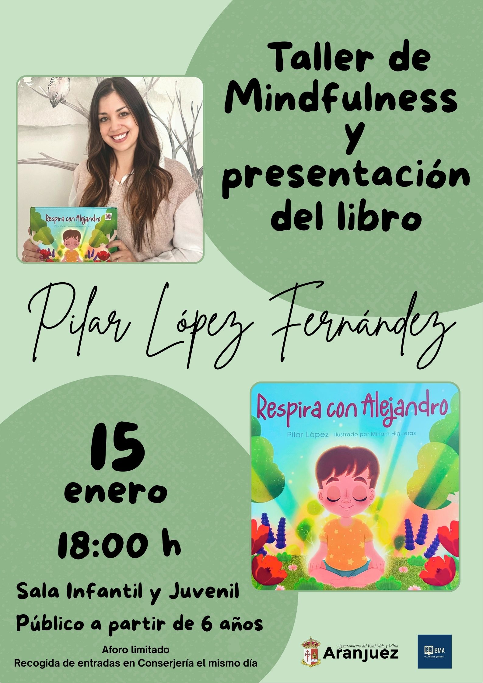 15ene18:0020:00TALLER MINDFULNESS Y PRESENTACIÓN LIBRO DE PILAR LÓPEZ FERNÁNDEZ. RESPIRA CON ALEJANDROJUEVES 15 DE ENERO BIBLIOTECA INFANTIL 18H. ENTRADAS GRATUITAS EN CONSERJERÍA EL MISMO DÍA DEL EVENTO