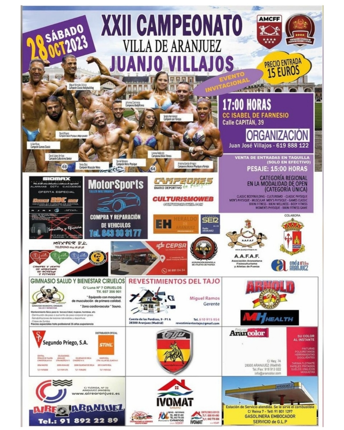 28oct17:00XXII Campeonato Villa de Aranjuez Juanjo Villajos28/10/23 - 17:00 h - CC Isabel de Farnesio - Entrada: 15€